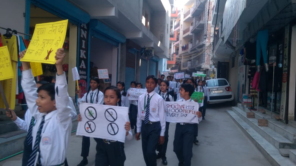 Students Rally against Tobacco and smoking in Dwarka Sec 23